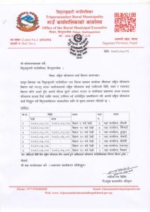 आज र भोलि वडा नम्बर ५ को तौथलीमा र त्यसैगरी २८ गते वडा नम्बर ५ कै गैरीगाउँबाट परिचयपत्र वितरण गरिने जनाएको छ । त्यस्तै २९ र ३० गते वडा नम्बर ३ धुस्कुन, भदौ १ गते र २ गते वडा नम्बर २ चोकटी, भदौ ३ गते वडा नम्बर १ घोर्थली, भदौ ५ गते वडा नम्बर ६ टेकानपुर र भदौ ८ र ९ गते वडा नम्बर ४ पिस्करबाट परिचयपत्र वितरण गरिने गाउँपालिकाबाट प्रकाशित सूचनामा उल्लेख गरिएको छ।