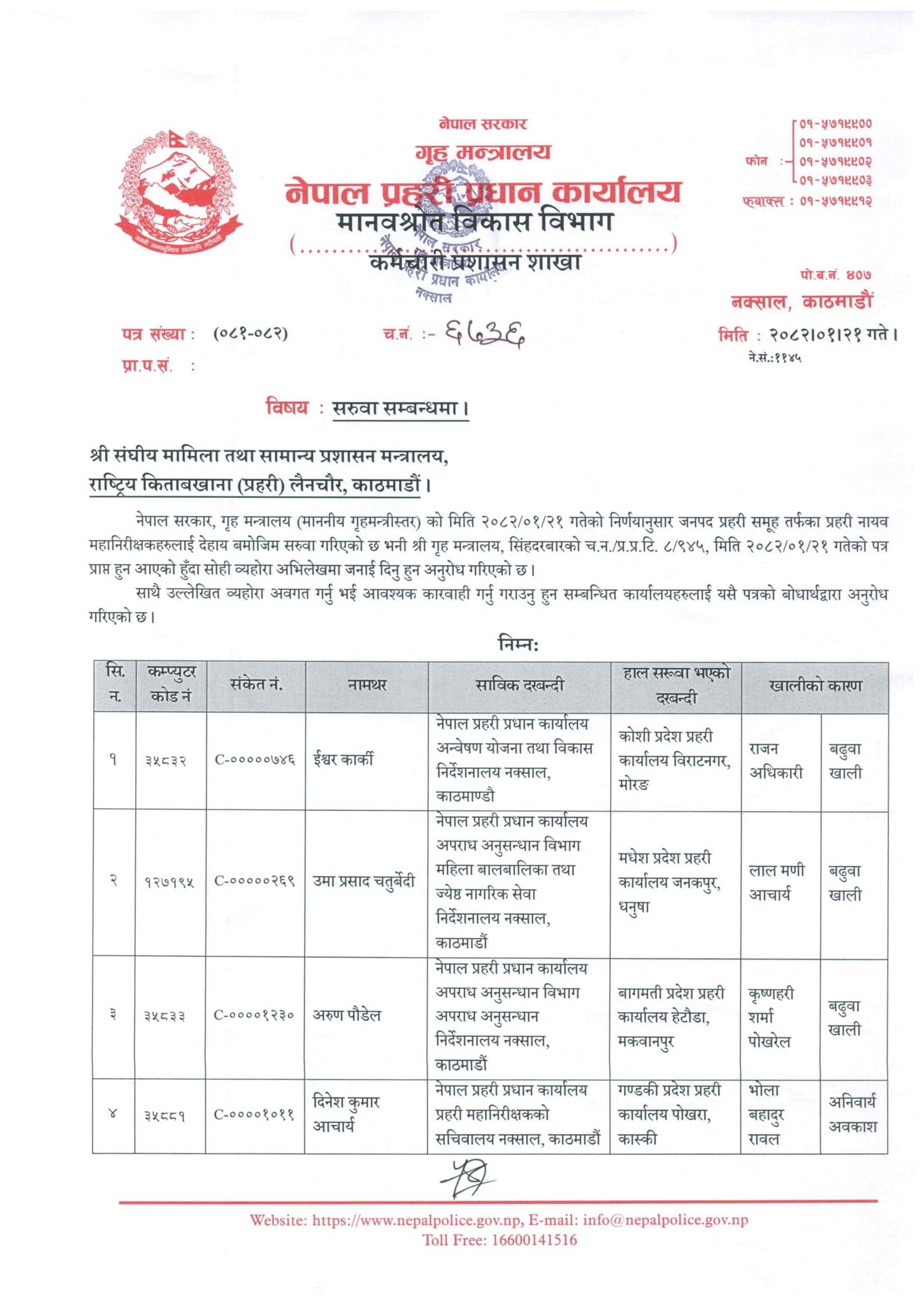 सातै प्रदेशमा प्रहरी नायब महानिरीक्षकको सरुवा