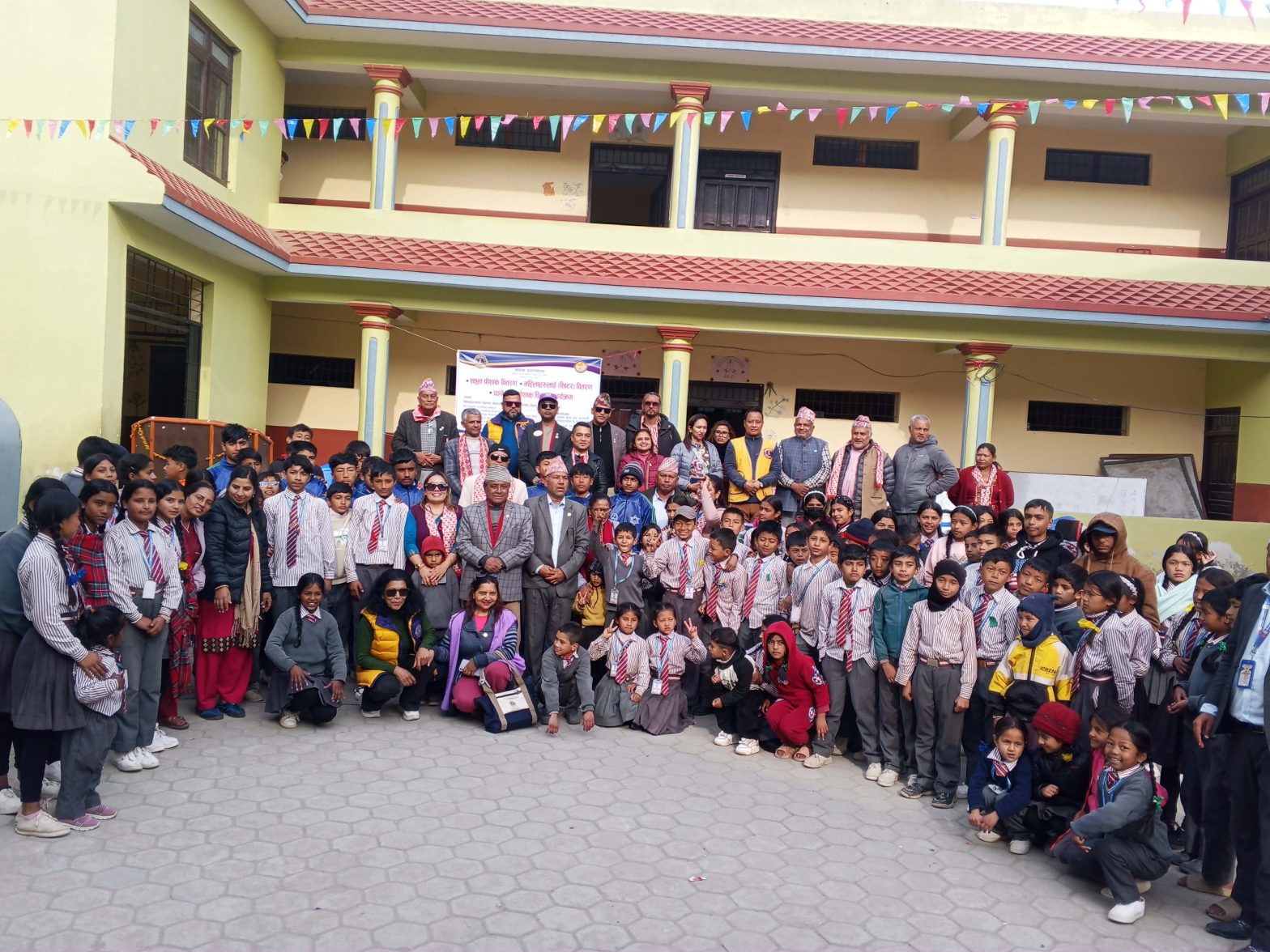 लायन्स क्लब र आर.वाई. फाउण्डेसनद्वारा भाैटेचाैरका विद्यार्थीलाई न्यानाे कपडा वितरण